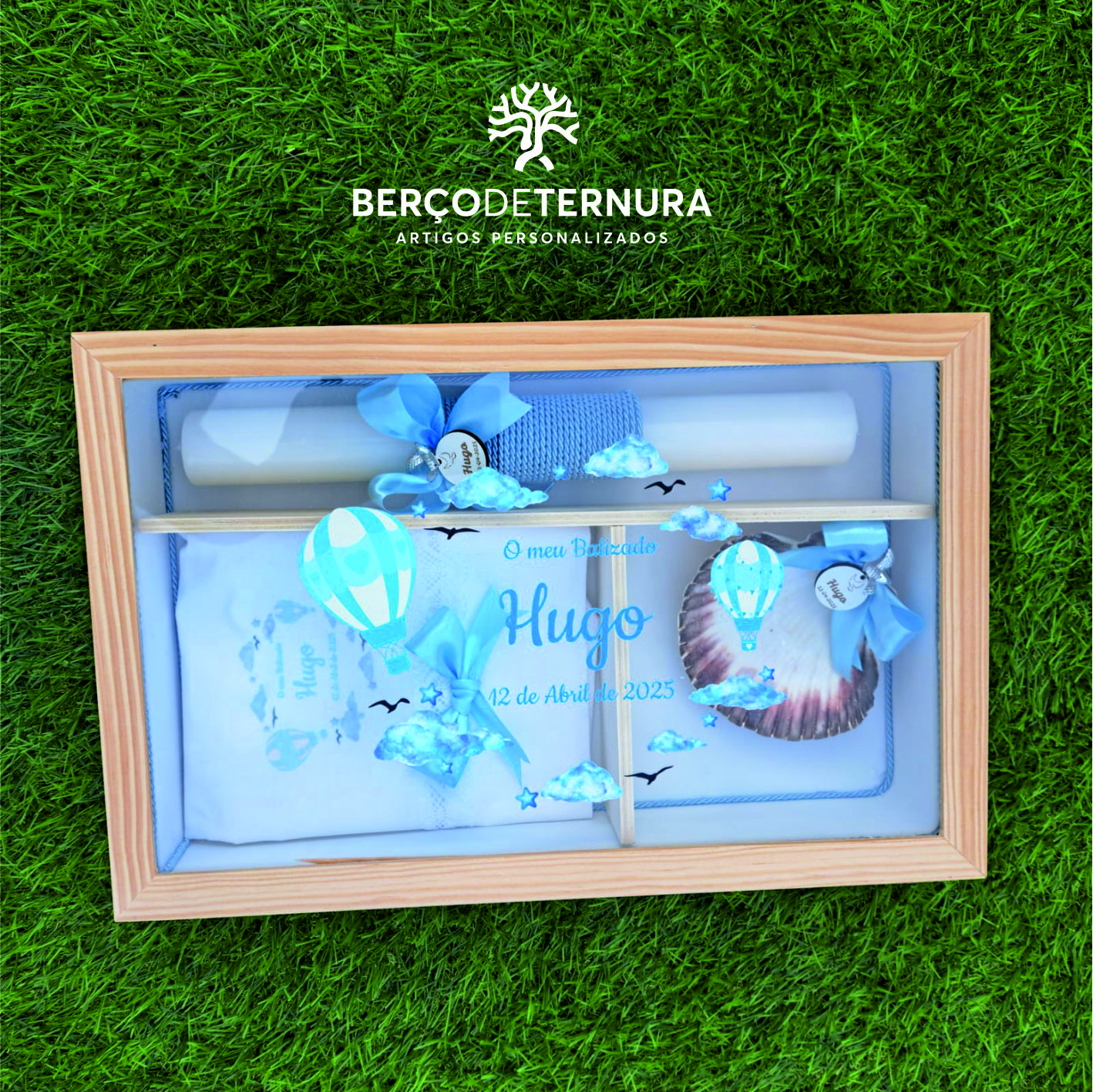 Caixa batismo personalizada Balão Ar Quente