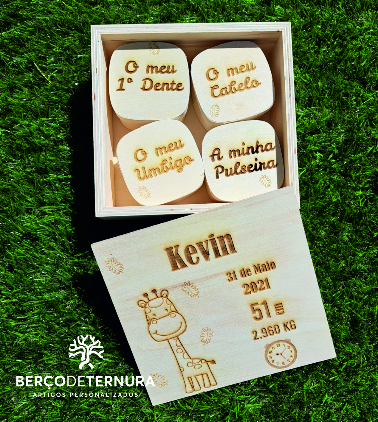 Personalizada com os dados do nascimento do bebé, esta caixa torna-se uma lembrança única e especial para toda a vida.