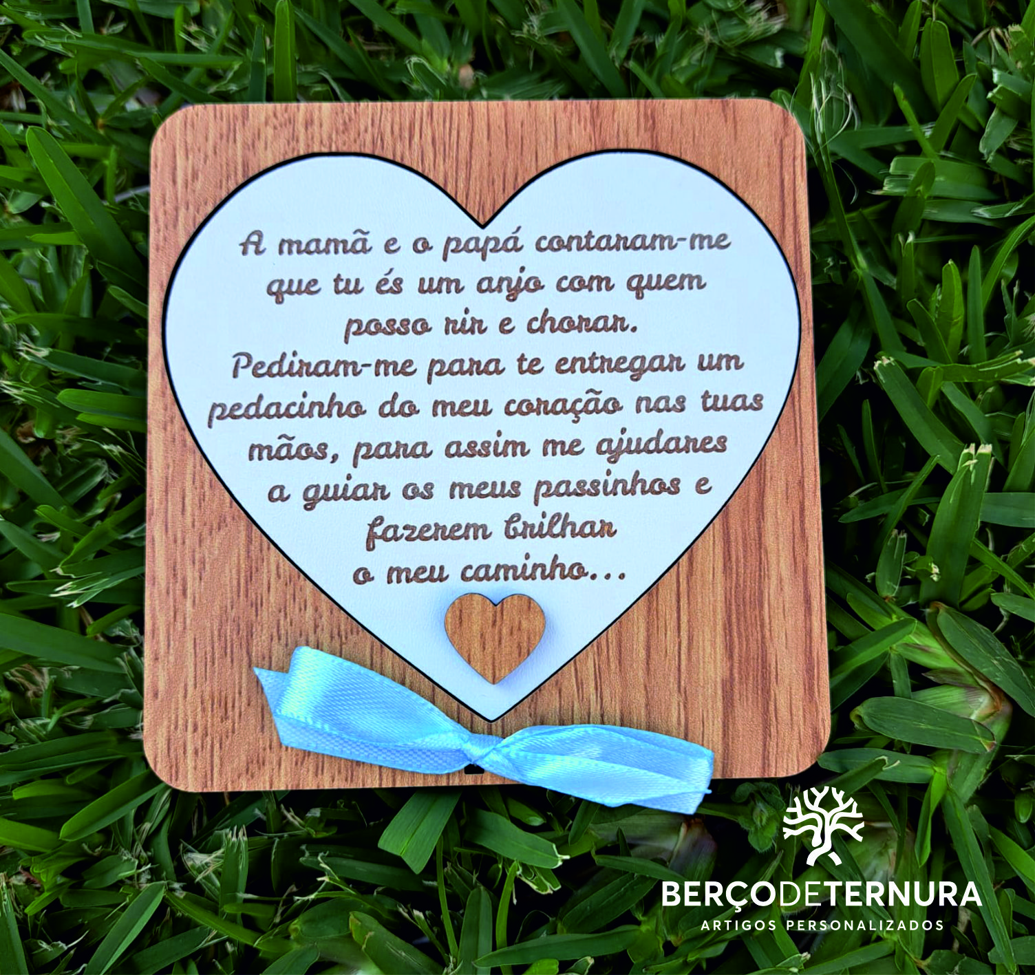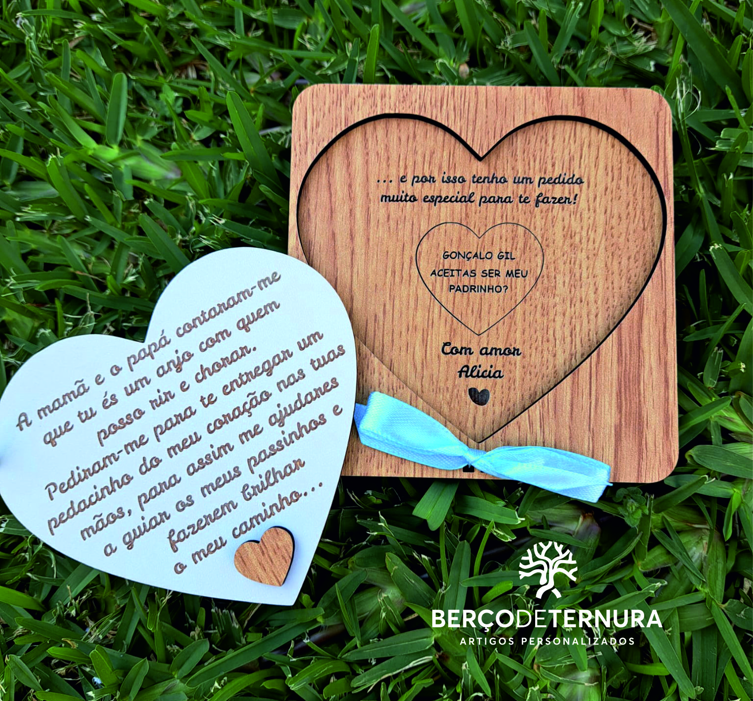 Bonito e elegante convite com coração destacável. Retire o coração e revele o convite para padrinho, madrinha ou padrinhos do seu filho.