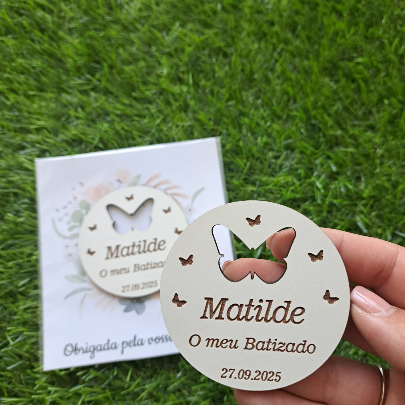 Home Lembranças Lembrança Borboleta com Iman Lembrança Borboleta com Iman Encomendar / Personalizar 2,00 € Desconto de %. Comprar Contactar Bonita e elegante lembrança com o tema de borboleta.Ofereça uma bonita lembrança aos seus convidados.Personalize com o nome, frases e data. Dimensões Cartão - 12x13cmDimensões Iman - 7cm Partilhar