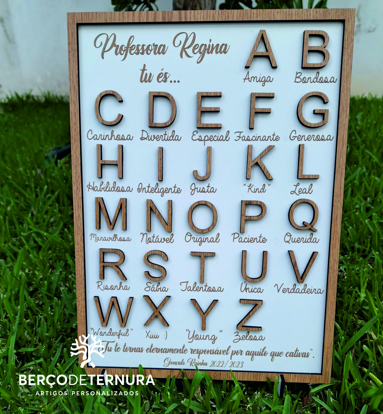 Bonito e elegante quadro para oferta a professoras, educadoras... Ofereça este bonito quadro com os adjetivos que melhor caracterizam aquela pessoa que diariamente cuida dos seus filhos.